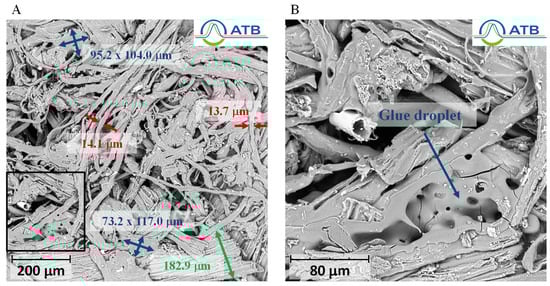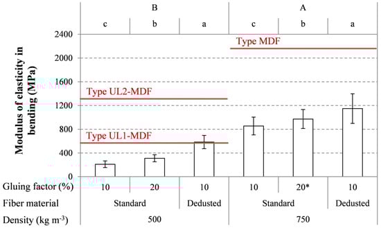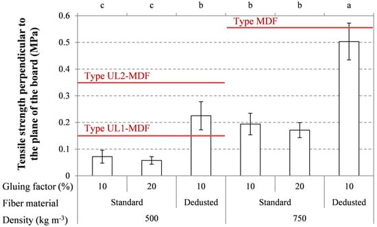 It is known from the literature that an increased content of fine particles and dust in the fibrous intermediate can lead to reduced strength properties in the pressed fiberboards [88,89]. For this reason, in addition to the standard intermediate produced in the dry/half-dry procedure, another dust-free experimental series was prepared by screening (reciprocating screen, round-hole sieve 0.9 mm).