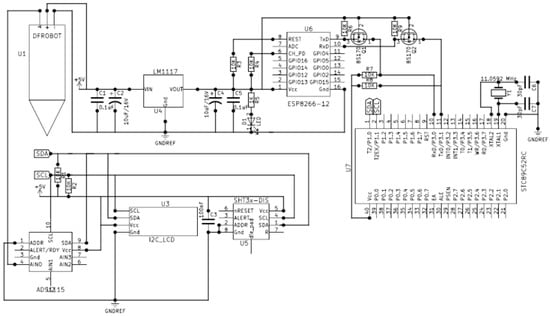 The data acquisition system used in this study consisted of two main components called the microcontroller unit and the Wi-Fi module. The main microcontroller STC89C52RC was operated at a speed of 11.0592 MHz. A software-implemented I2C bus [25] was used to interface a 16 × 2 LCD (1602 character-type liquid crystal display) module, an ADS1115 16-bit analog-to-digital converter (ADC), and temperature and humidity sensor with the microcontroller. An ESP8266-12E low-cost serial-to-WiFi module was interfaced through STC89C52RC inbuilt UART. The analog data output pin of the SKU:SEN0193 sensor was connected to the ADS1115 with a full-scale range of ±4.096 V. The ADS1115 converted the voltage of SKU:SEN0193 sensor to raw counts (raw). ThingSpeak API, an open IoT (Internet of Things) platform, was used to collect and analyze data with MATLAB@ analytics. The assembly program for the microcontroller (Supplementary Material: Microcontroller program code) was written by using Keil µVision 5 IDE, and AT commands were used to control the WiFi module (Figure 1 and Figure 2). The total cost of the developed prototype was around $45.7 (Table 1).