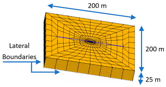 It is worth noting that the analysis assumed that no pore water pressure is generated in soils, i.e., the soil is idealised as a single-phase material. The assumption may lead to inaccuracy if liquefaction or other failure mechanisms induced by pore water pressure are important [,]. To avoid complexities, the model considers that the flow rule and softening/hardening are independent of stress-induced anisotropy and the magnitude of confining pressure. Nonetheless, these two assumptions are challenged by many studies [,,]. Both assumptions can be relaxed in future studies to increase the accuracy of the prediction by considering more advanced models performed in OpenSees, such as [,].