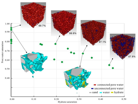 - Wu, P.; Li, Y.h.; Sun, X.; Liu, W.G.; Song, Y.C. Pore-scale 3D morphological modeling and physical characterization of hydrate-bearing sediment based on computed tomography. J. Geophys. Res. Solid Earth 2020, 125, e2020JB020570. [Google Scholar] [CrossRef]