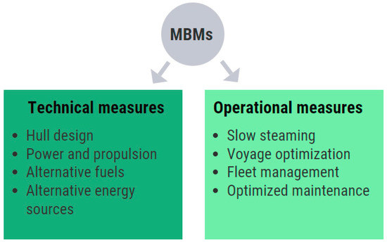 In order to cope with the increasing GHGs emissions, the International Maritime Organization (IMO) set a goal according to which international shipping needs to reduce at least 50% of their released GHGs by 2050, compared to 2008. levels [30]. The IMO decarbonization strategy defines three levels of measures to achieve the required GHGs reduction goal: short-term, mid-term and long-term measures [31], Figure 6.