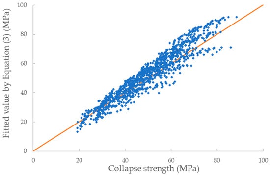In Equation (3), the expression of fitted collapse strength (Pfit) contains several constants. These constants are regarded as the effect of material properties of SPs.