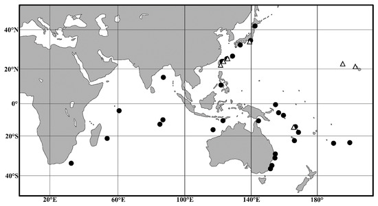 - Springer, V.G. Pacific Plate Biogeography, with Special Reference to Shorefishes. Smithson. Contrib. Zool. 1982, 367, 1–182. [Google Scholar] [CrossRef][Green Version]