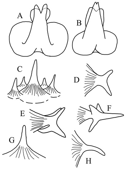 - Bradbury, M.G. The genera of batfishes. Copeia 1967, 2, 399–422. [Google Scholar] [CrossRef]