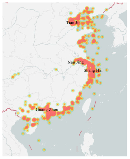 Figure 1. Heat map of the locations of maritime accidents along the Chinese coastline.
