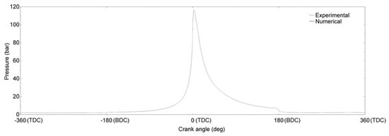 Regarding Figure 2, the relation between the crank angle and volume is given by Equation (8) [].