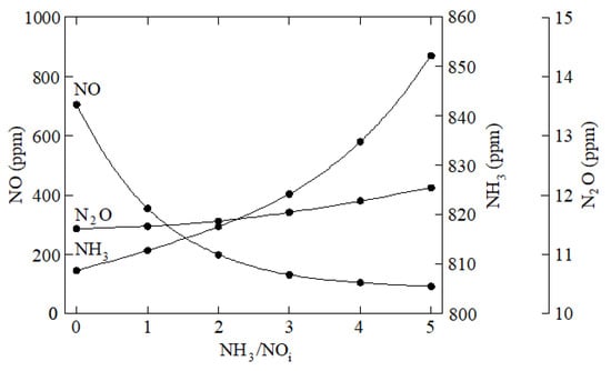 NO, N2O, and NH3 emissions against the NH3/NOi ratio.