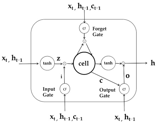 The BiLSTM model is composed of two-layer networks of forward LSTM and backward LSTM. The outputs of the two LSTM layers at the same time were combined to obtain the eigenvalues, which integrate the forward and backward information of the sequence. The unit structure of LSTM is shown in Figure 5 and specific calculation process can be expressed as follows: