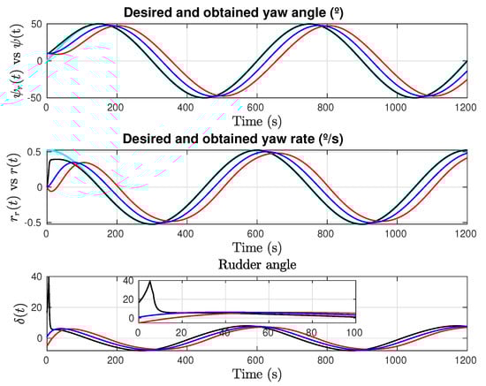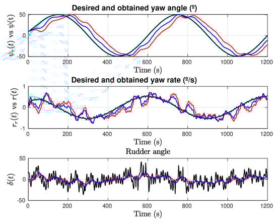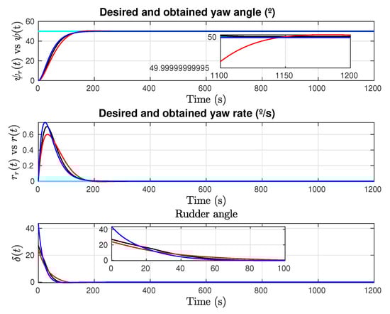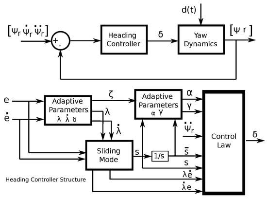 Henceforth, it is assumed that a reference yaw establish the desired input to be tracked, which can be obtained by means of path planning algorithms, that account for different environment constraints as in [,,,]. A dynamic reference model is used, in this work, to generate the desired course ().