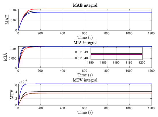 - The algorithm parameters are configured in the case of the step input reference without disturbances, such that all solutions provide the same value of the MIA index at the end of the test time.