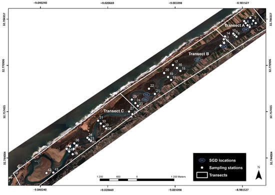 Coastal lagoons are considered as the most important life and human wellbeing provider areas in both terrestrial and water body parts. They are the most highly productive coastal features as their ecosystem offers a decently valuable natural benefit, ecologically, culturally, and socioeconomically [1]. The lagoon of Oualidia is a shallow saltwater estuary, maintained by fresh SGD inflow [2,3,4]. It can be described as an important system that offers a trove of natural wealth despite its relatively small size of 7 km long and 1 km wide. The lagoon is highly exploited by human activities such as tourism, fisheries, and aquaculture, mainly oyster farming that can reach 250 tons of production per year. The lagoon has been one of the most important oyster farming areas since 1950, and for this reason, it has been called the “traditional oyster capital” in Morocco [5,6,7].