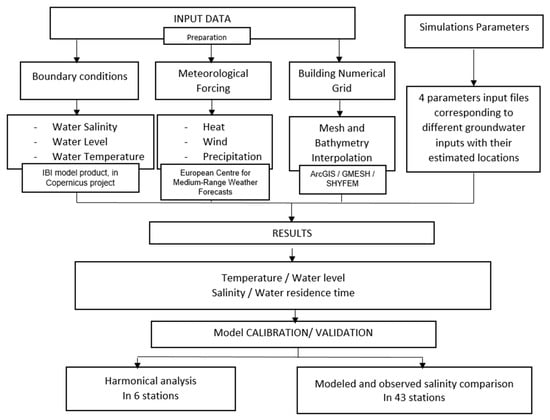 The boundary conditions data used for the simulations are salinity, water levels, and temperature. These were downloaded according to the period of simulations from the reanalysis of the IBI model product in the Copernicus project. http://marine.copernicus.eu/services-portfolio/access-to-products/ (accessed on 5 January 2022).