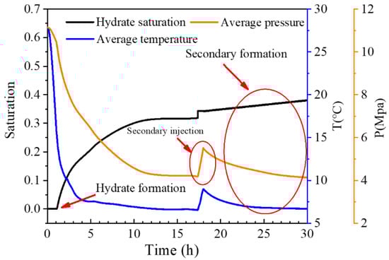 3.1. Temperature and Pressure Change in Vertical Well Depressurization of Hydrate Sediments