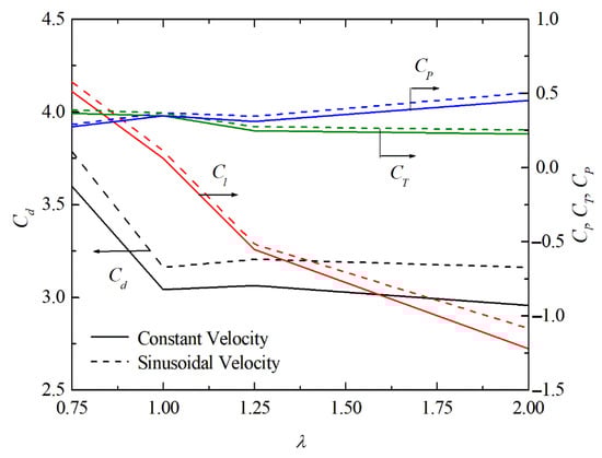 In the present work, results the influence of λ over the drag, lift, moment, and power coefficients (Cd, Cl, CT, and CP) are based on [57]: