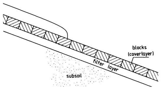 Overview of the layers on the landward slope of a block-covered dike, adapted from Bezuijen et al. [].