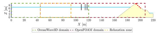 Overview of OceanWave3D and OpenFOAM® domain, with X [m] and Z [m] the horizontal and vertical position in the flume.