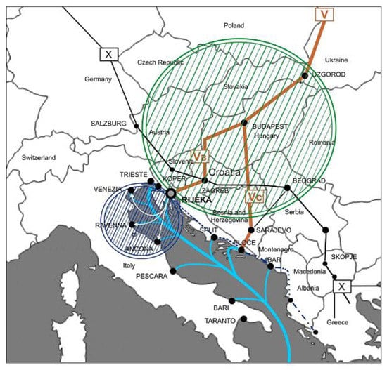 - Port of Rijeka Authority. Prometni Koridori. 2020. Available online: https://www.portauthority.hr/prometni-koridori/ (accessed on 7 November 2020).