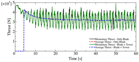 - It was found that the thrust of the wind turbine affects the bending moment generated at the hull by an increase of 5∼10%. Furthermore, for longer periods, the effect of the thrust has an about 20% increase concerning the bending moment.