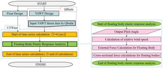 In order to make UTWind compatible with VAWT, the rotor part of HAWT must be made compatible with VAWT. Figure 23 shows a flow diagram of the simulation. In this study, drag coefficients were calculated from the thrust output from QBlade to match the tower and input directly into the model.