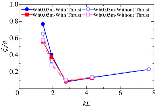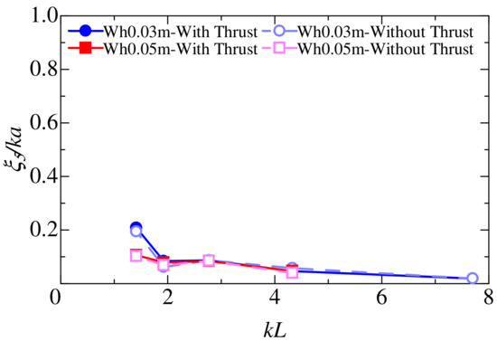 - In the case of this test model, thrust was found to affect the response to motion at longer wave periods. From the results of the regular wave test, the effect of thrust could not be confirmed in the range of a wave period less than 1.0 s (wave period of 10.0 s in the actual model), and the motion response of surge showed a minimum value around 1.0 s wave period. In the wave period range of 1.0 s or longer, the motion response in the surge, heave, and pitch directions was affected by thrust. This is due to the fact that negative damping is evident. In the future, it will be necessary to confirm whether the effect of negative damping will still appear when two actual Darrieus wind turbines are installed.