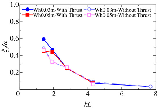 Table 9 shows the experimental conditions. In this experiment, when the ducted fan was started, the thrust and float were unstable immediately after startup, so measurements were checked during the experiment and waves were generated at the timing when the thrust and float were nearly constant.