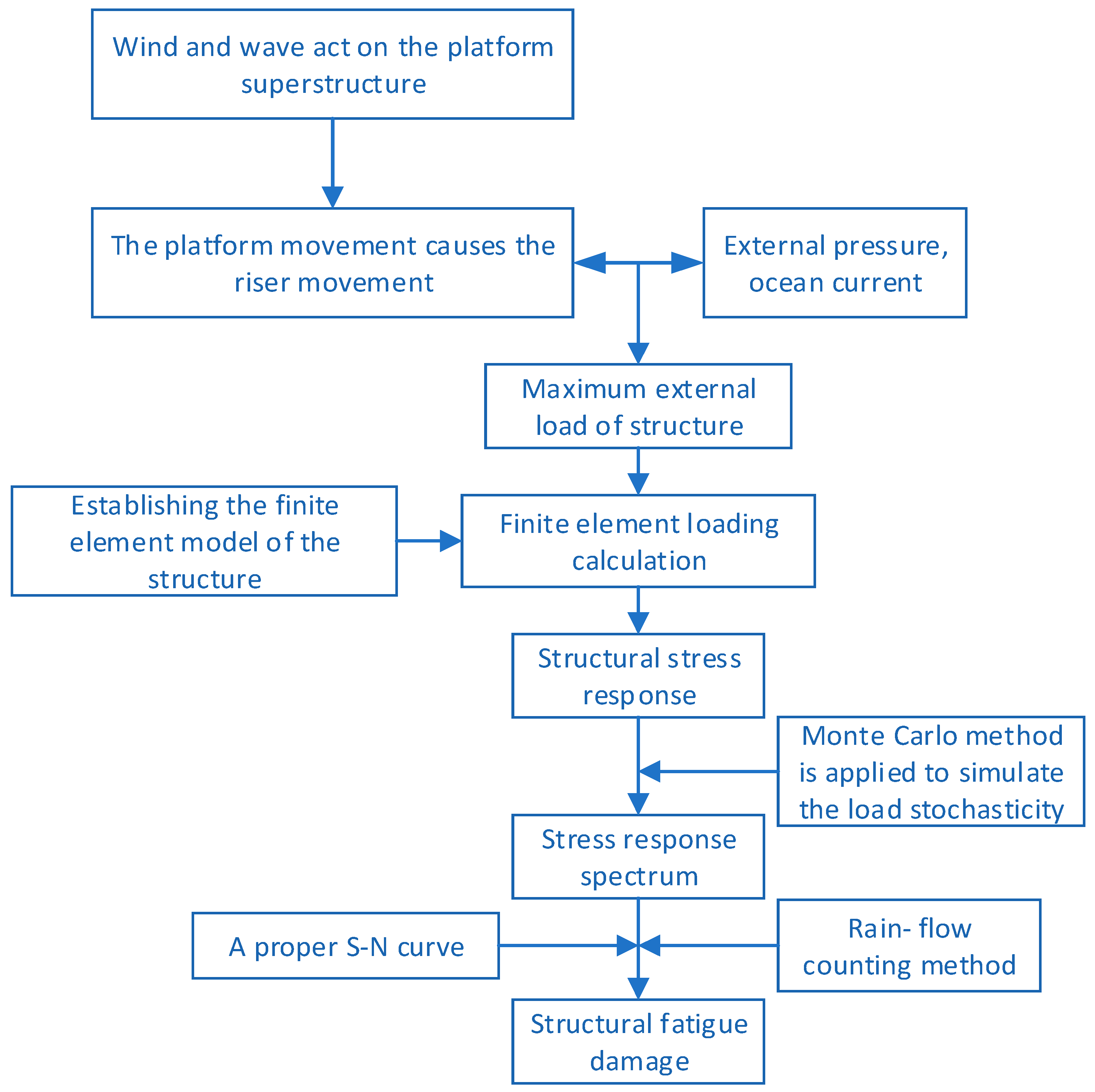 Based on the stress process statistics given by the rain-flow counting method, fatigue analysis can be carried out further. Specifically, the load cycle times