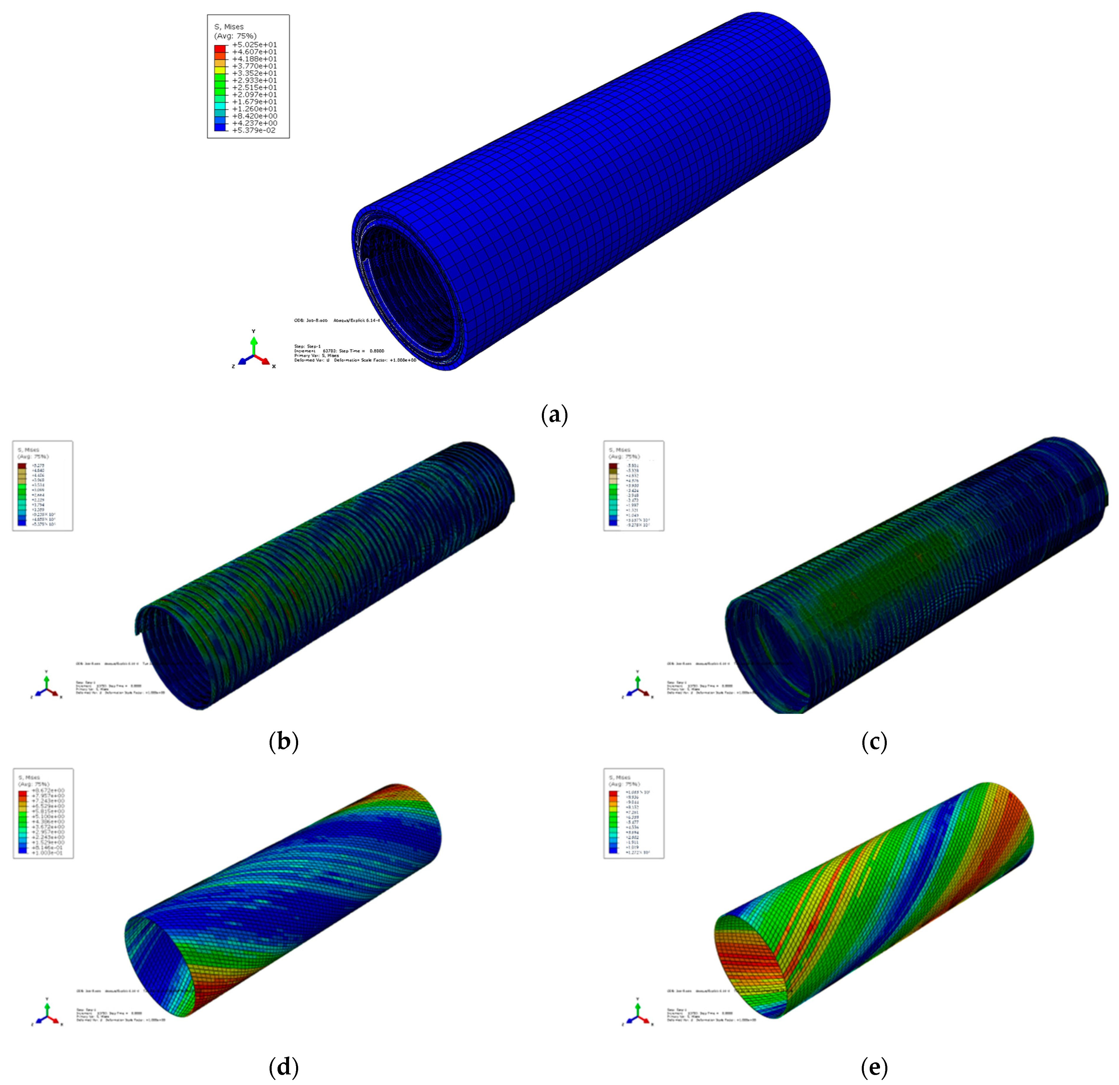4]. Therefore, these layers are generally not considered in the study of structural strength. In current research, the skeleton layer structure and the compressive/tensile layer structure are regarded as mutually orthogonal cylindrical structures. The structure simulation method is effective to obtain the circumferential pressure load, and the stress response process of the flexible riser under a circumferential load can be proposed [