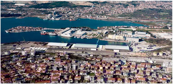 - SkyScraperCity. Splitska Luka|Port of Split. Available online: https://www.skyscrapercity.com/threads/split-splitska-luka-port-of-split.948134/page-63 (accessed on 5 September 2022).
