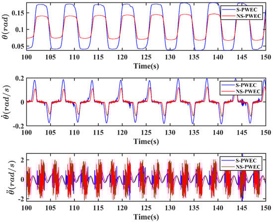 - is the secondary viscous drag moment; in practice, the wave energy converter device in the process of action with the wave will induce vortex detachment, resulting in a viscous effect [18].where is the coefficient of the secondary damping term in the viscous torque. can be obtained from the relevant literature or hydrodynamic experiments. V is the speed of the floating plate, is the speed of the surrounding fluid, and represents the moment of the viscous force on the pivot point.
