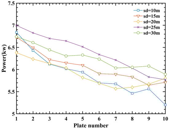- The array floating plate has a longitudinal optimal arrangement distance, the spacing is too large or too small, and it is not conducive to the array floating plate power generation. By experimental calculation, when the arrangement distance is 25 m, the whole wave energy conversion system electrical energy output power reaches the maximum.