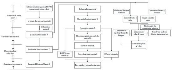 The CTOS evaluation index group is . The internal CTOS evaluation factors are ). denotes the CTOS evaluation index group. contains the number of CTOS evaluation indexes between, and is factors within the CTOS evaluation index group. is the CTOS evaluation index group ). indicates that there is a network of interaction between the CTOS evaluation indicator group. includes the number of CTOS evaluation indicators, i.e., there is a network relationship of mutual influence.