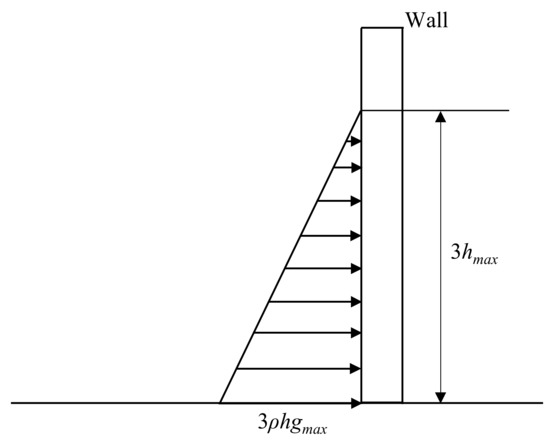Besides the experimental measurement approach, empirical formulas have been proposed to directly estimate the impact force of tsunami waves on coastal infrastructure. In the widely used Japanese Structural Design Guideline (SMBTR) [15] which is based on the research by Asakura et al. [16] and Okada et al. [15], the maximum pressure was set as three times the hydrostatic pressure and also three times the maximum wave height linearly distributed on the front face of the vertical wall, as indicated in Figure 1.