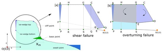 - Hoque, M.A.; Pollard, W.H. Arctic coastal retreat through block failure. Can. Geotech. J. 2009, 46, 1103–1115. [Google Scholar] [CrossRef]