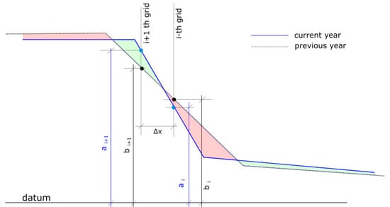 - The critical slope () is taken as depth-averaged for the profiles. One depth-averaged value is estimated for each zone in the study area. A matrix of values at different depths and geometries will increase the model’s accuracy.