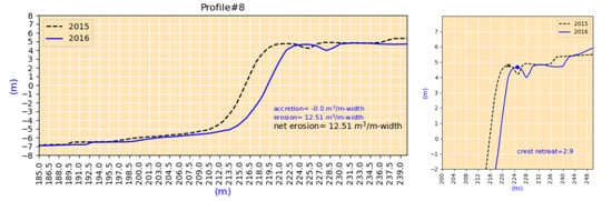 | Cases | Zone | Profile | Time | Crest Retreat | Erosion | Accretion | Net Erosion | |