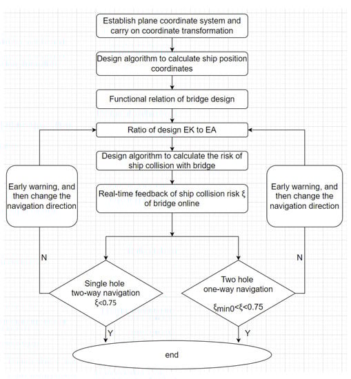 Flow chart of ship–bridge collision risk algorithm and early warning system.