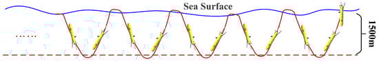 UGs, characterized by long operation range (up to several thousand kilometers), long endurance (up to months), low costs and repeatable utilization, are driven by the buoyancy to move vertically and the lift produced by the fixed wings to achieve horizontal movement, thus traveling in a sawtooth trajectory beneath the sea surface. During diving or climbing through the water column, UGs collect various measurements, including temperature, conductivity, dissolved oxygen, current, fluorescence of chlorophyll, sound, etc., depending on the equipped sensors. The “Petrel II” UGs (Figure 1) developed by Tianjin University, China were applied in the research. “Petrel II” UG can be equipped with multiple physical and biochemical sensors, such as a CTD sensor, vector hydrophone, background hydrophone, current meter, MicroRider and optical backscatter. Each dive cycle of the UG took about 4∼5 h to reach up to 1500 m depth vertically and cover about 4∼5 km horizontally, which is not constant, as the presence of intense currents may impact it. The performance of “Petrel II” gliders has been validated in repeated sea trials [37].