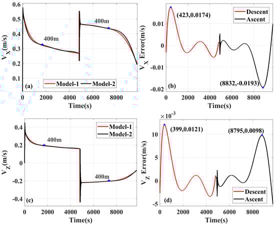 Simulation results of and in the vertical plane. (a) ; (b) error; (c) ; (d) error.