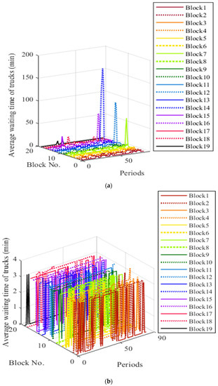Trucks concentratedly arriving at the terminal to pick-up or deliver containers not only results in truck congestion, but also in the low utilization of container terminal equipment. Furthermore, the level of workload in different blocks is uneven and changes dynamically over time. As a result, container terminals rarely ever utilize the yard crane capacity to the fullest. Truck arrivals and yard crane scheduling rely on each other to achieve a good performance in pickup and delivery operations. Therefore, Zehendner et al. [30] proposed a mixed integer linear programming model for the optimization of appointment quotas and the allocation of straddle carriers to different transport modes. The model improved not only the service quality of trucks, but also of trains, barges and vessels. However, for the container yard served by gantry cranes, the gantry crane cannot move from one block to another in the same period as frequently as the straddle carrier. In order to get the well-designed yard crane deployment, it is necessary to obtain the workload of each block in each period. Therefore, it would be better to specify in which block the container is going to be when making the appointment. Ma et al. [31] developed a bi-level programming model for the optimization of appointment quotas of each block in each period and RTGC deployment. In order to balance the interests of container terminals and truckers, Li et al. [32] set up a bi-objective integer model to optimize appointment quotas and yard cranes deployment in container deliveries simultaneously.