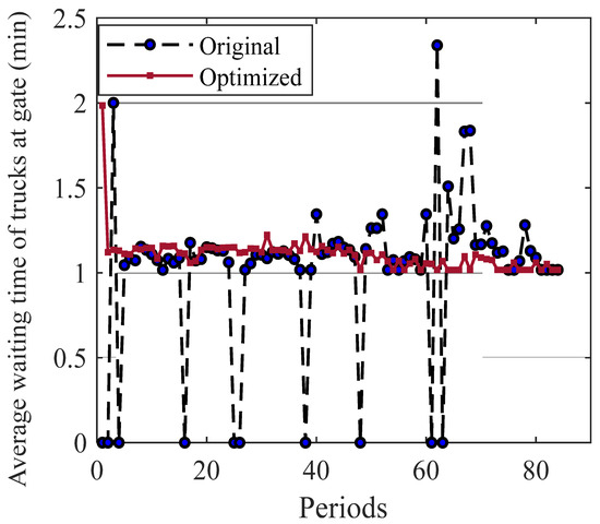 - : the average number of trucks waiting in queue at terminal gate at time interval