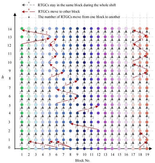 - Because of the limitation of block sizes and the potential danger of crane collision, the maximum number of RTGCs assigned to each block per deployment shift is two [36,37].