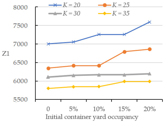 The TAS was first introduced in the Vancouver port of Canada, and many marine container terminals in North America followed. At present, the ports of Los Angeles and Long Beach in America [11] and Tianjin port in China have implemented TAS. By assigning appointment quotas to the maximum amount of trucks that can be accepted per period, the TAS can regulate off-peak truck deliveries and reduce trucks’ congestion at the container terminal. Furthermore, TAS could provide information about truck arrival time windows. Utilizing the incomplete truck arrival information can also improve the efficiency of yard operations in terms of reducing container rehandles [12,13,14]. Therefore, it is necessary to design the TAS scientifically. Huynh and Walton [15] simulated the operation process of trucks in container yards to obtain the average turn time of trucks, then a mathematical formulation was applied to determine the optimal number of trucks that could enter the yard per time window. In order to determine the optimal appointment quotas, the non-stationary queueing models were used to describe the queuing process of trucks at the gate and yard of the container terminal [16]. The essence of TAS is shifting truck arrivals from peak to off-peak periods. However, the arrival time adjustments will bring inconvenience to the truck drivers. To fix this problem, Chen et al. [17] developed a bi-objective optimization model that minimizes both truck waiting times and the number of shifted truck arrivals. Phan and Kim [18,19] proposed an improved concept in which truck companies and the terminal operator collaboratively determine truck operation schedules and truck arrival appointments. Container terminals can not only use TAS to relieve terminal congestion, but also use the appointment information obtained from TAS to optimize the storage space allocation problem in container yards [20].