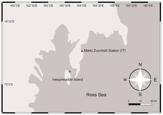 During the XXXIV Italian Antarctic Expedition (2018/2019), from samples collected in Terra Nova Bay, Ross Sea, Antarctica by Isabella Moro, two diatom strains were isolated: IMA082A from a seawater sample collected from Inexpressible Island with coordinates 74°54′ S 163°39′ E, and IMA088A obtained from a sampling of the desalination plant filters of the Italian research Mario Zucchelli Station, with coordinates 74°41′39.06″ S 164°07′18.18″ E (Figure 1). The diatoms strains IMA082A and IMA088A were grown both in F/2 [14] growth medium with a salinity of 35‰ in a growth chamber at 5 °C and a light intensity of 10 μmol photons m−2 × s−1.