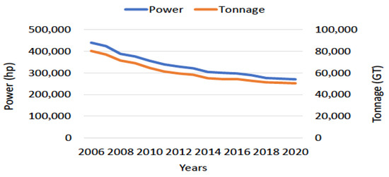 Since 2006, power has decreased by 38.5%, from 440.058 hp to 270.662 hp in 2020 (Figure 3). For its part, the tonnage has decreased from 80.341 to 50.446 GT, a decrease of 37.2% in fourteen years. If we divide these numbers by the number of boats in each sector, we obtain the Table 1: