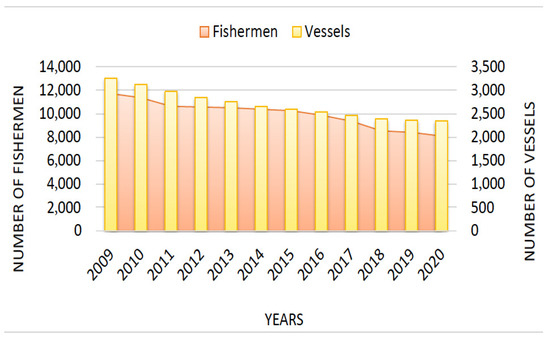 Evolution of the number of fishing vessels (2006–2020) 3.