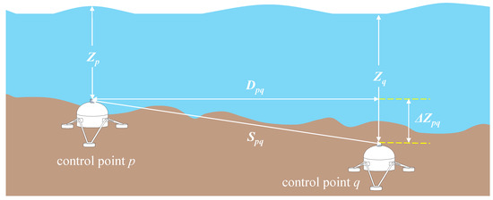 Generally, there is a pressure sensor installed on the seafloor control point that can provide the high-precision depth from the sea surface to the control point. The elevation of the control point can then be obtained by subtracting the depth from the elevation of the sea surface. In this case, the 3D adjustment model in the relative positioning of a unit network can be transformed into a 2D adjustment model. As shown in