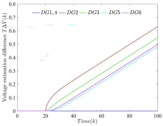 Furthermore, it can be observed from Figure 8 that the voltage estimation difference also diverges to ∞ with increasing iterations due to the abnormal consensus performance shown in Figure 7. This is because in (18) makes the iteration process of diverge.