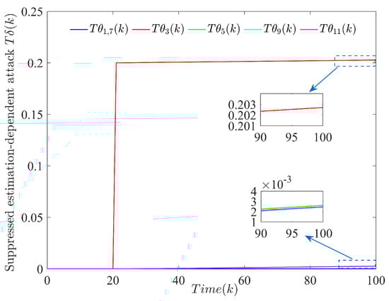 In addition, Figure 11 shows both the amplitude and divergence speed of the unbounded estimation-dependent attack are greatly suppressed. This is because the estimation difference is suppressed greatly by using the proposed strategy.
