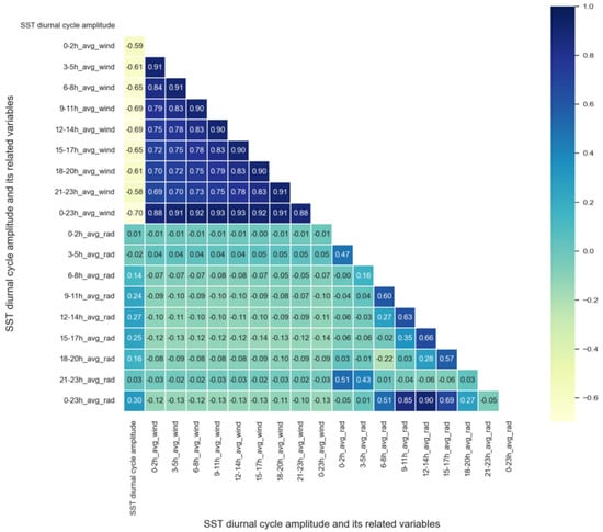 Heat map of the relationship between factors related to the SST diurnal cycle amplitude.
