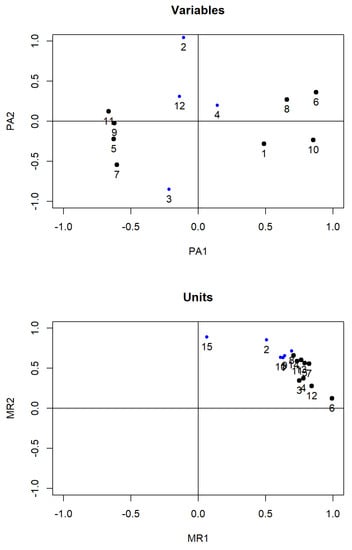 The first eigenspace both of the variables and units is given in Figure 5. It is clear that the structure is visible, which confirms that the historical time series cannot be summarized by a small number of parameters. That is to say, it would be accurate if the whole of past years were used to predict the future values.